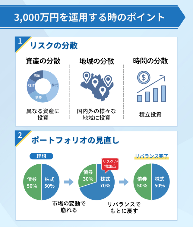 リスクの分散は、3,000万円という大きな資産を安全に運用するための基本的かつ効果的な戦略である。