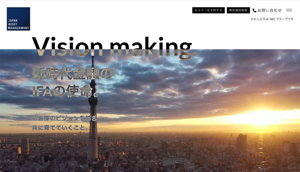 | 株式会社 Japan Asset Management | NECと資本提携 JAM WRAP低コスト一任 寄付先アドバイザーなど社会貢献型サービス | 詳細な現状分析で設計したい 社会的インパクトや低コストを重視 |