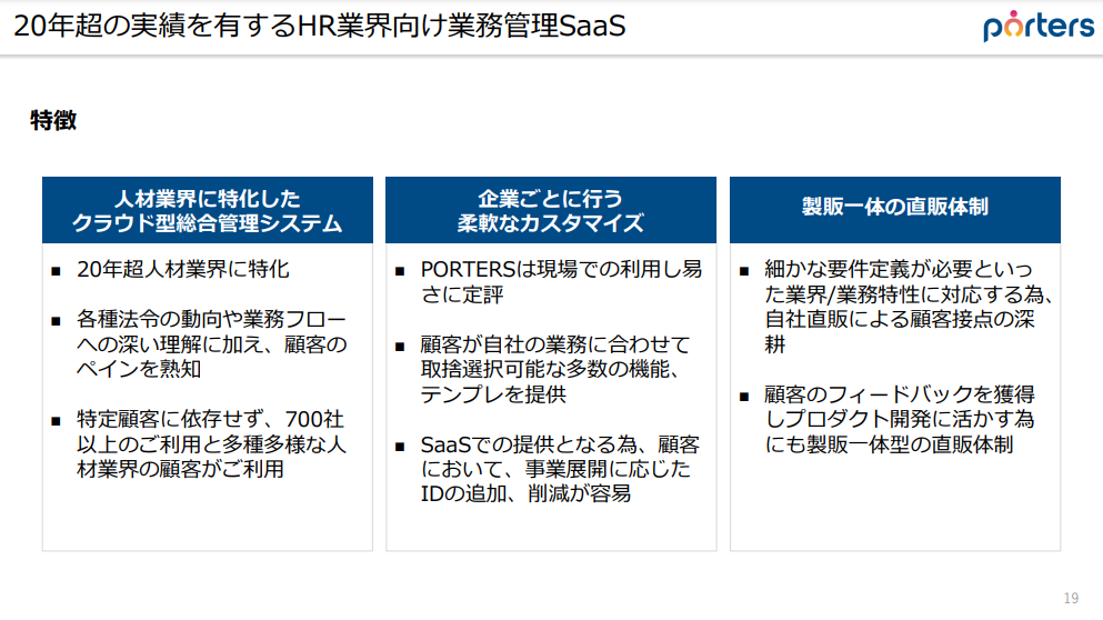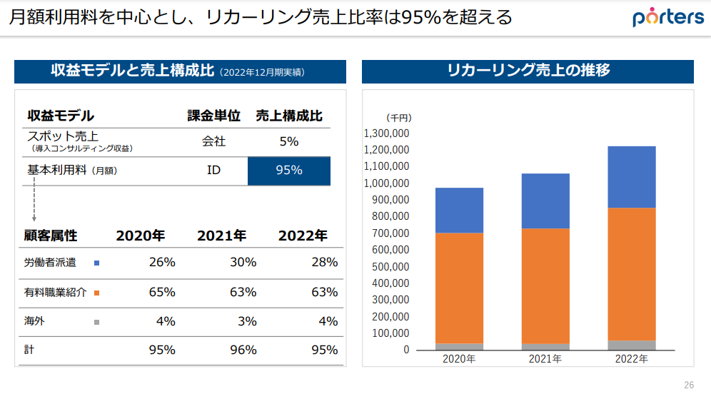 雇用拡大のためのクラウドサービスを提供し、リカーリング売上が全体の95%を占めるポーターズ株式会社。