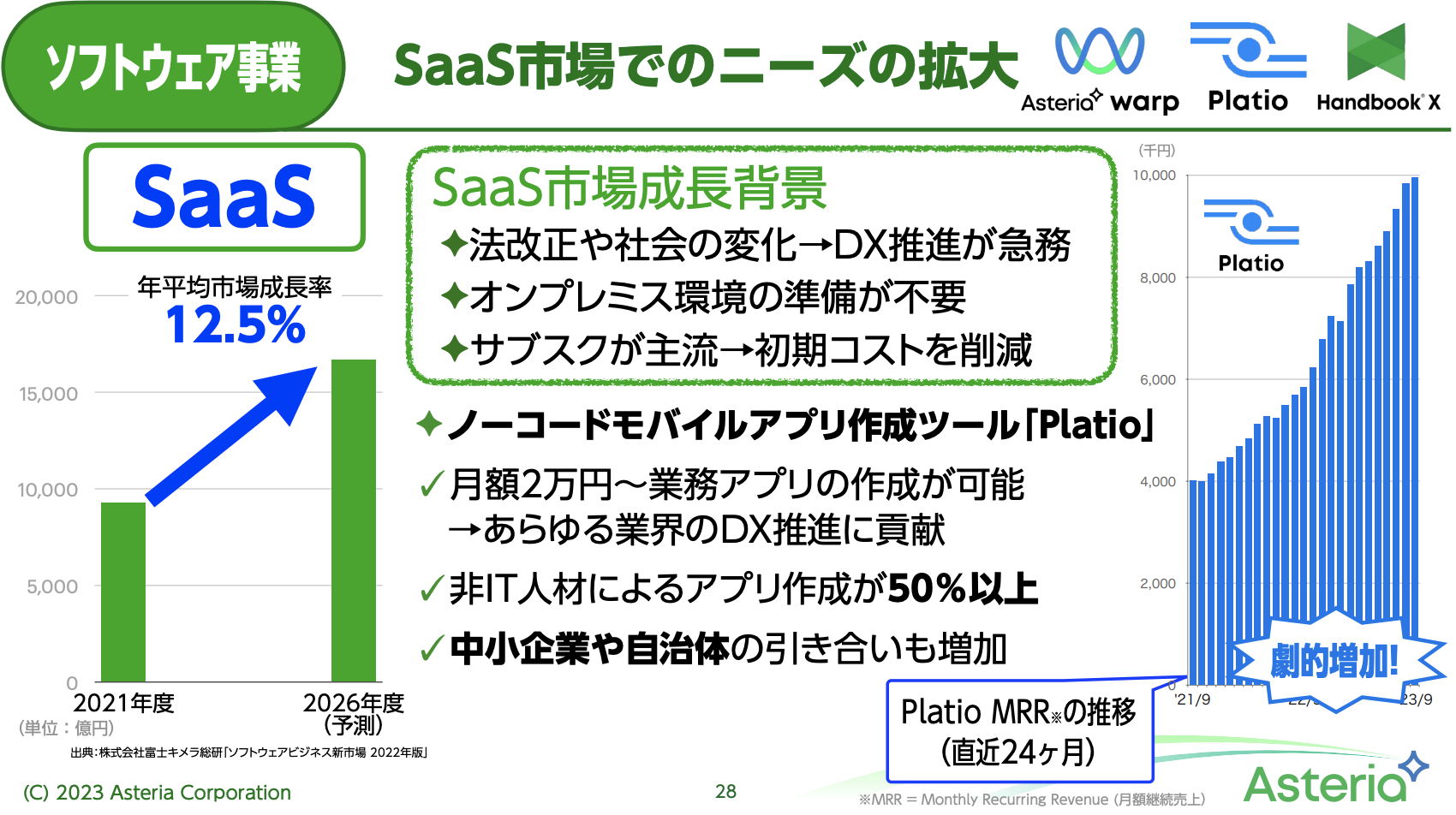 当社もSaaS領域の市場拡大に伴い、特に「Platio」などで需要を捉え、継続的な成長を実現していきます。
