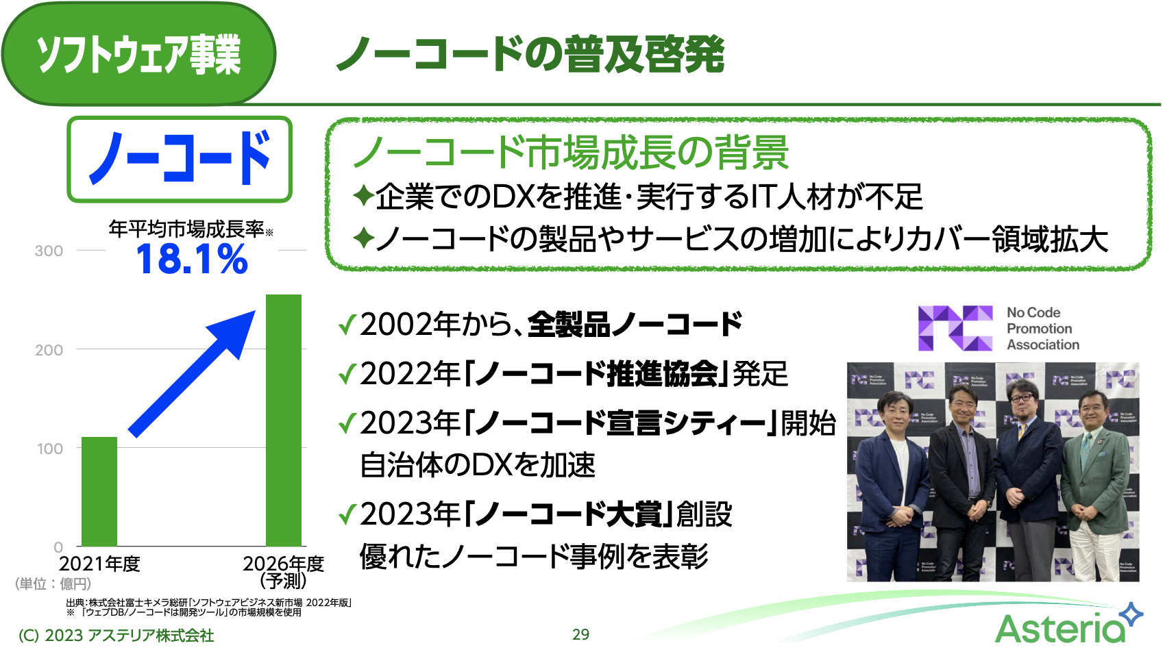 このようにノーコードの認知度を上げ、市場を拡大させることが、我々の成長にも繋がると考えています。