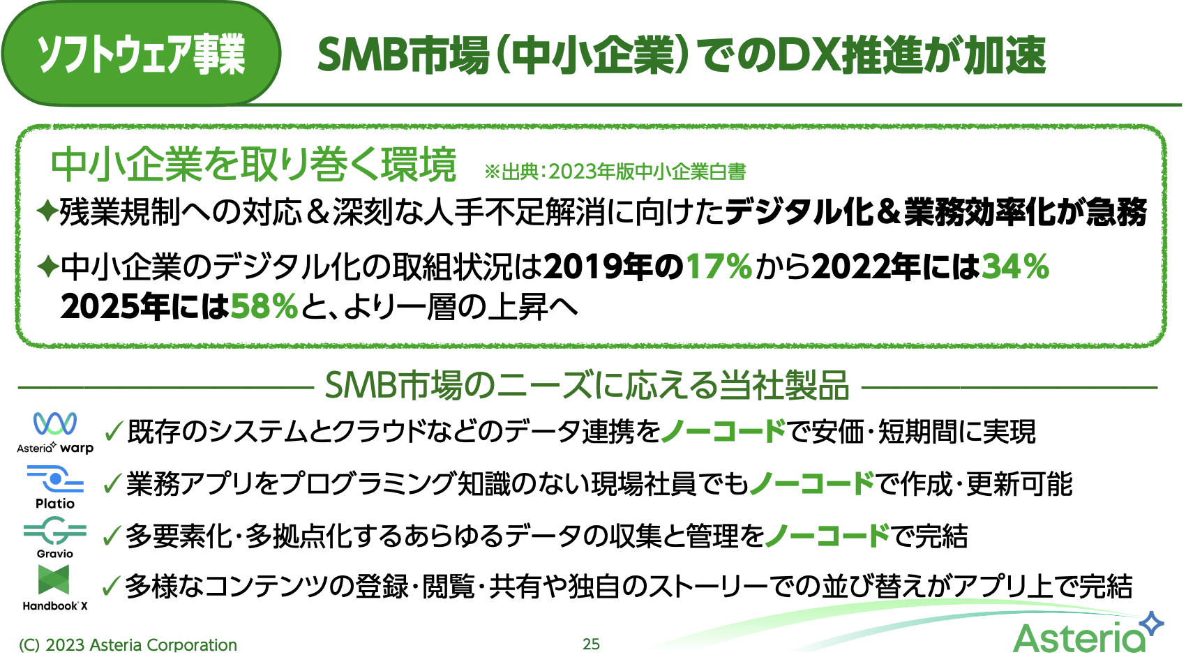 実際、足元では中小企業で当社製品の普及が進んでおります。